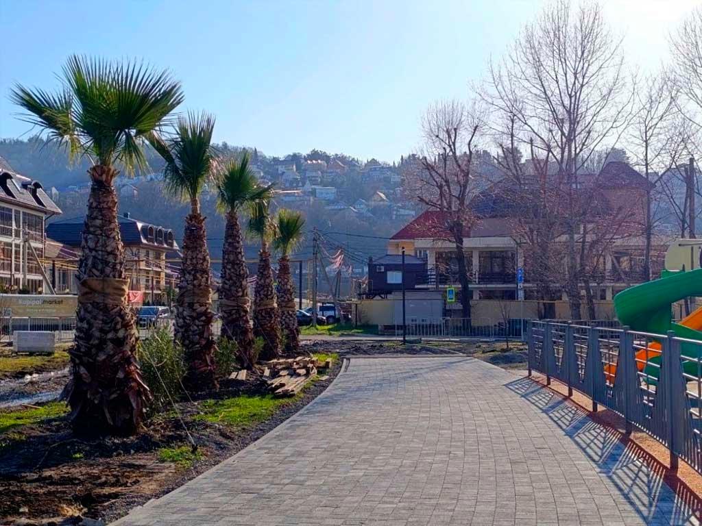 В Сочи заканчивается второй этап благоустройства сквера Тормахова. Это общественное пространство площадью более 2000 квадратных метров, расположено в Лазаревском районе на улице Аэродромной.